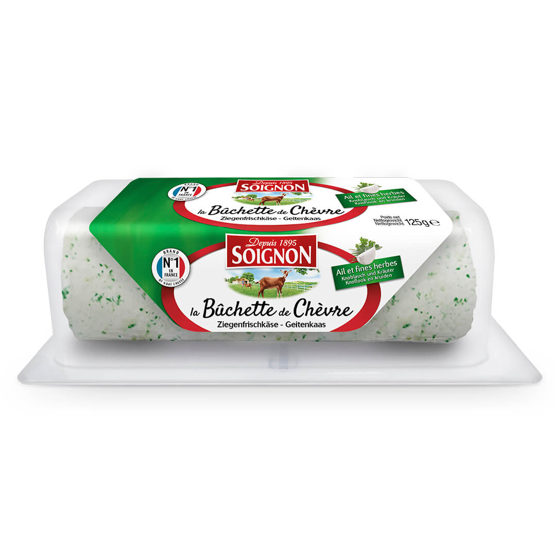 Valkosipulilla ja yrteillä maustettu vuohenjuusto Ranskasta. Sopii juustolautaselle, ruoanlaittoon tai salaattiin. Mieto ja raikas maku.